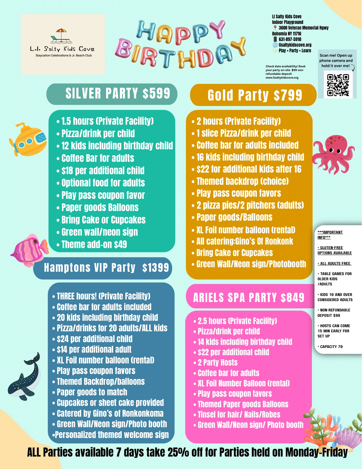 Call 631-897-5910 for more information or send email to info@lisaltykidscove.com